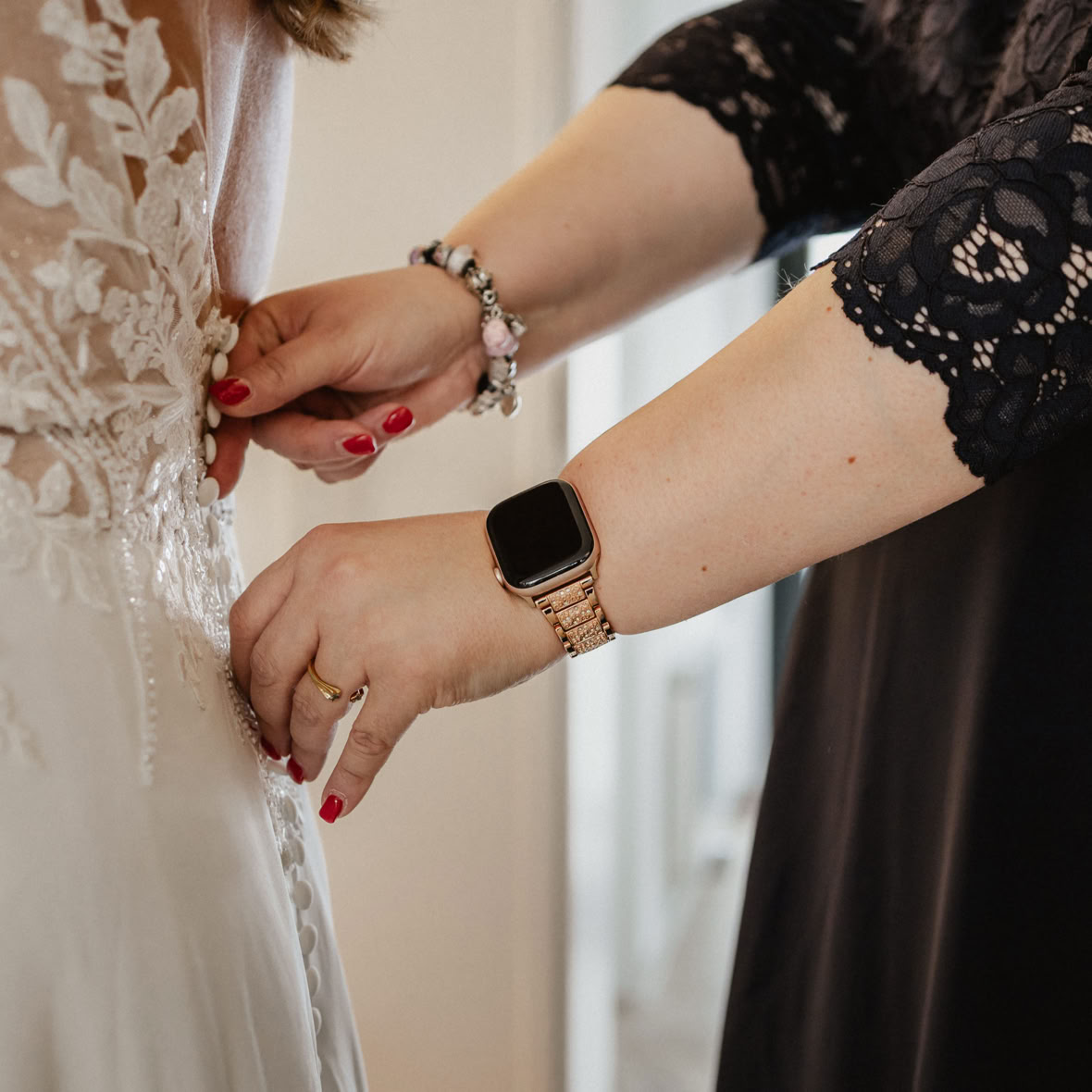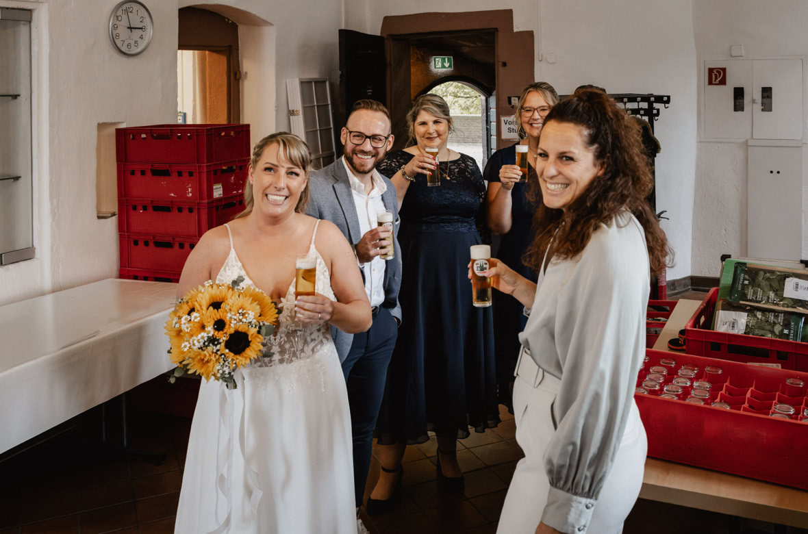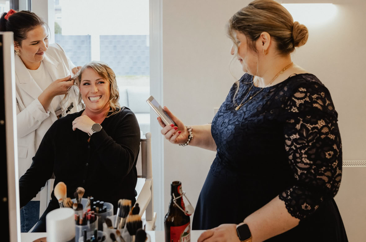 Schon beim Getting-Ready lag diese besondere Stimmung in der Luft: Lachen, Sekt und die besten Freundinnen an Katrins Seite, während sie sich auf ihren großen Moment vorbereitet.