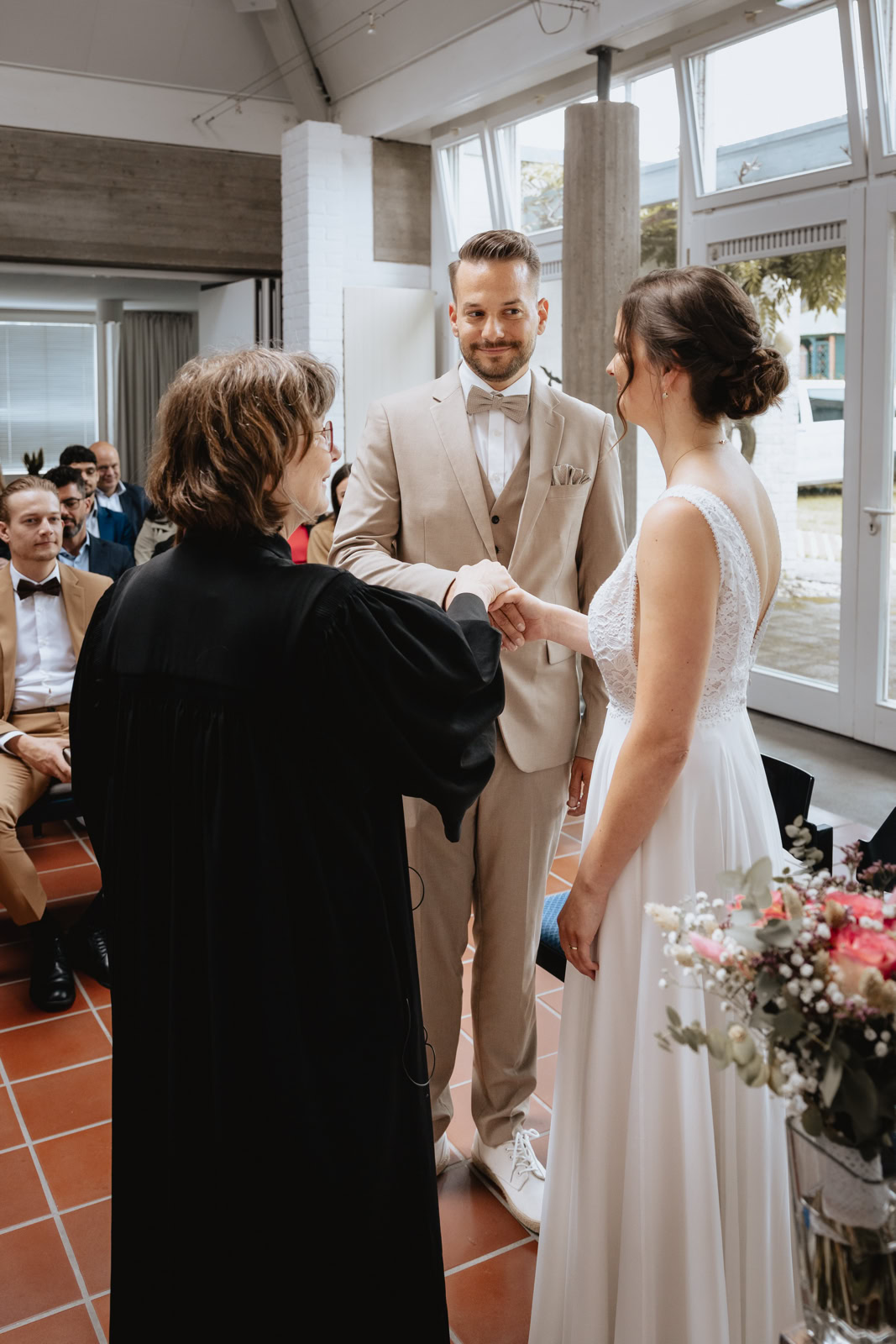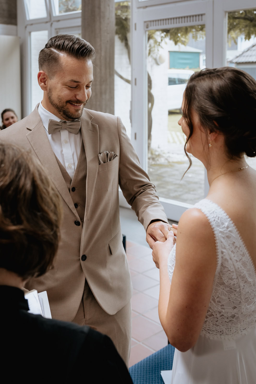 Josi sah in ihrem weißen Kleid bezaubernd aus, strahlend vor Glück und voller Vorfreude auf die gemeinsame Zukunft mit Daniel. Dieser wiederum konnte seinen Blick kaum von seiner schönen Braut abwenden, so glücklich und stolz war er, sie zur Frau nehmen zu können. Die Liebe, die zwischen den beiden spürbar war, verlieh der Zeremonie eine ganz besondere Atmosphäre.
