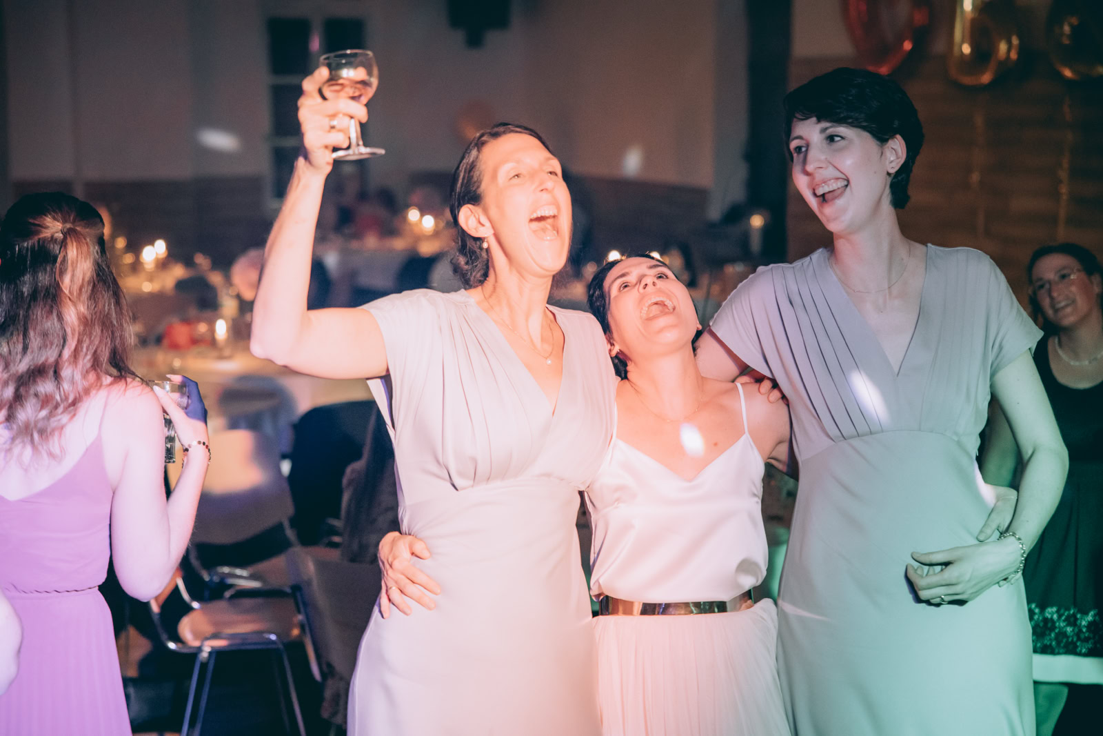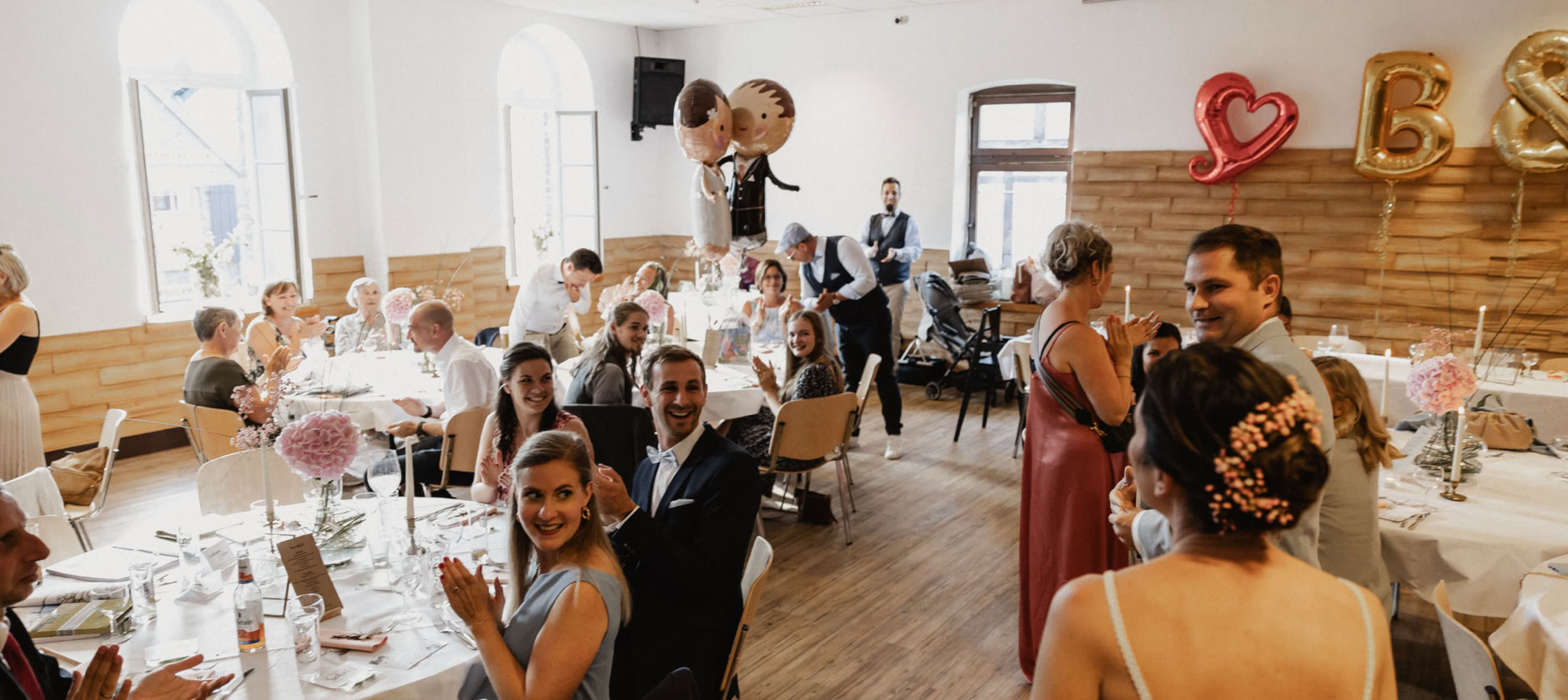 Als sie die Location betraten, wurden sie von ihren strahlenden Gästen empfangen, die voller Freude waren, das glückliche Paar zu feiern. Die Stimmung war ausgelassen, die Liebe spürbar und die Freude unbeschreiblich. Es war eine Ehre für mich, als Hochzeitsfotograf die Liebe und die einzigartigen Momente dieses besonderen Tages festzuhalten.