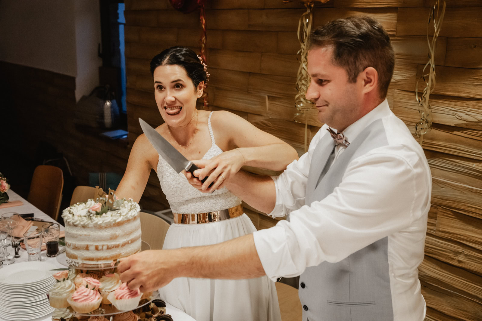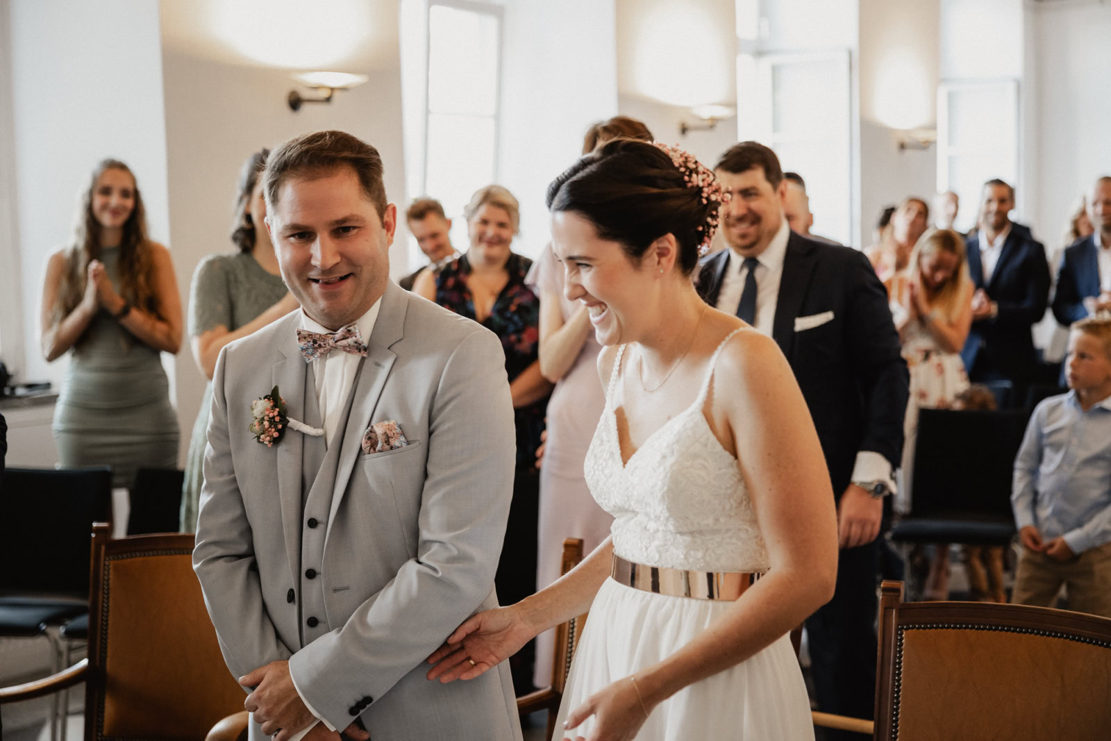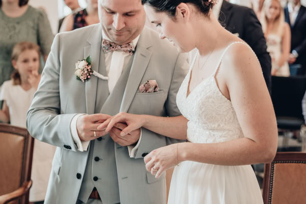 Die Trauzeremonie verlief reibungslos, und am Ende konnten sich Katharina und Boris doch noch die Ringe anstecken. Die Sonne schien heller, als das frisch vermählte Paar sich einander versprach. Boris wartete mit einem zauberhaften Oldtimer auf Katharina, und sie fuhren gemeinsam zur Eventlocation in Erftstadt, begleitet von strahlendem Sonnenschein.