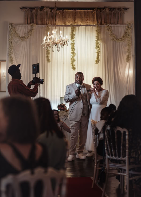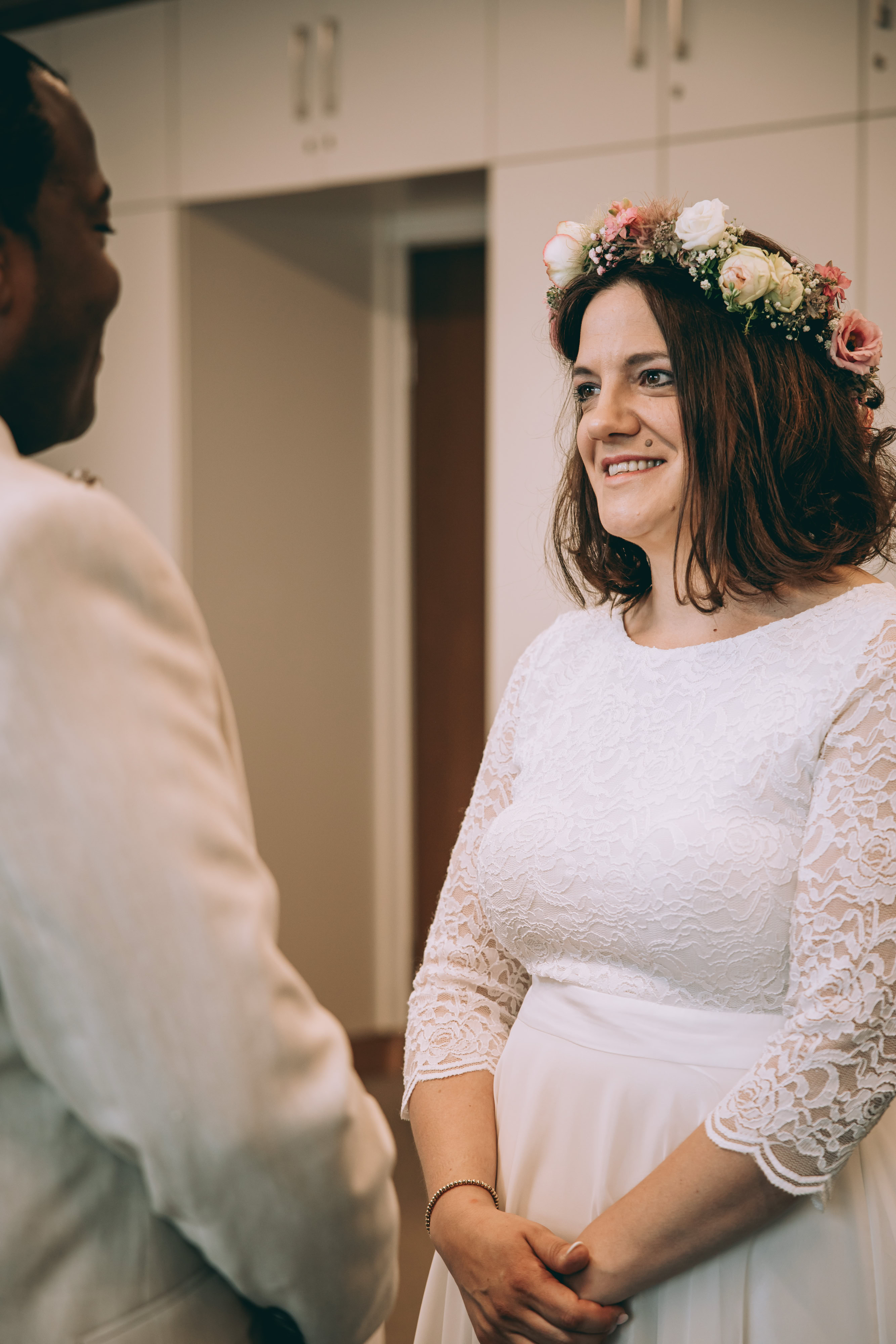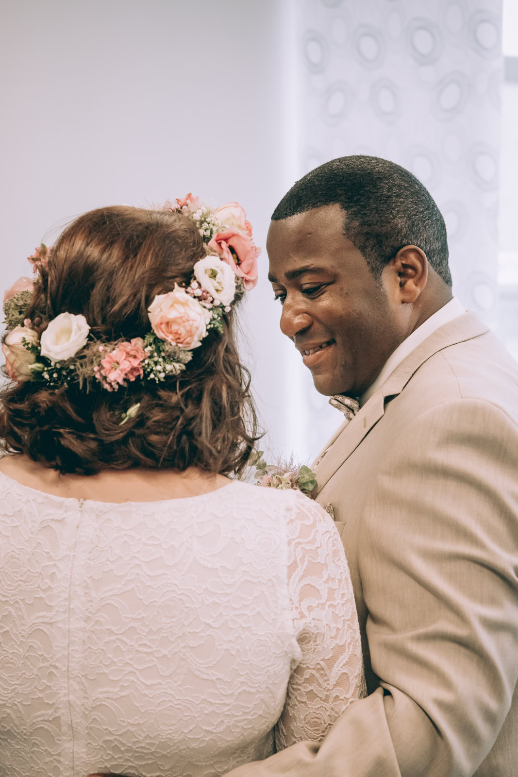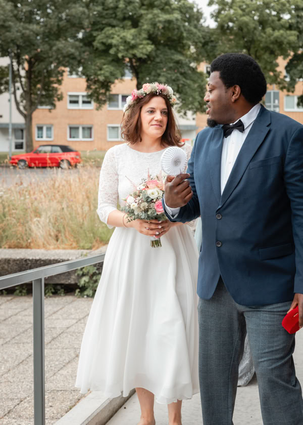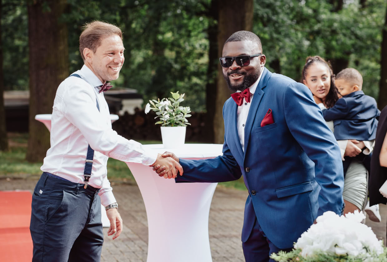 Die Hochzeitszeremonie fand im Standesamt Bedburg statt, wo Dombel bereits im Trauzimmer auf seine bezaubernde Braut Michele wartete. Begleitet von Dombels Mutter und unter den sehnsüchtigen Blicken der Gäste betrat Michele den Raum, und der Moment der Vereinigung zweier Menschen voller Liebe und Freude wurde festgehalten.