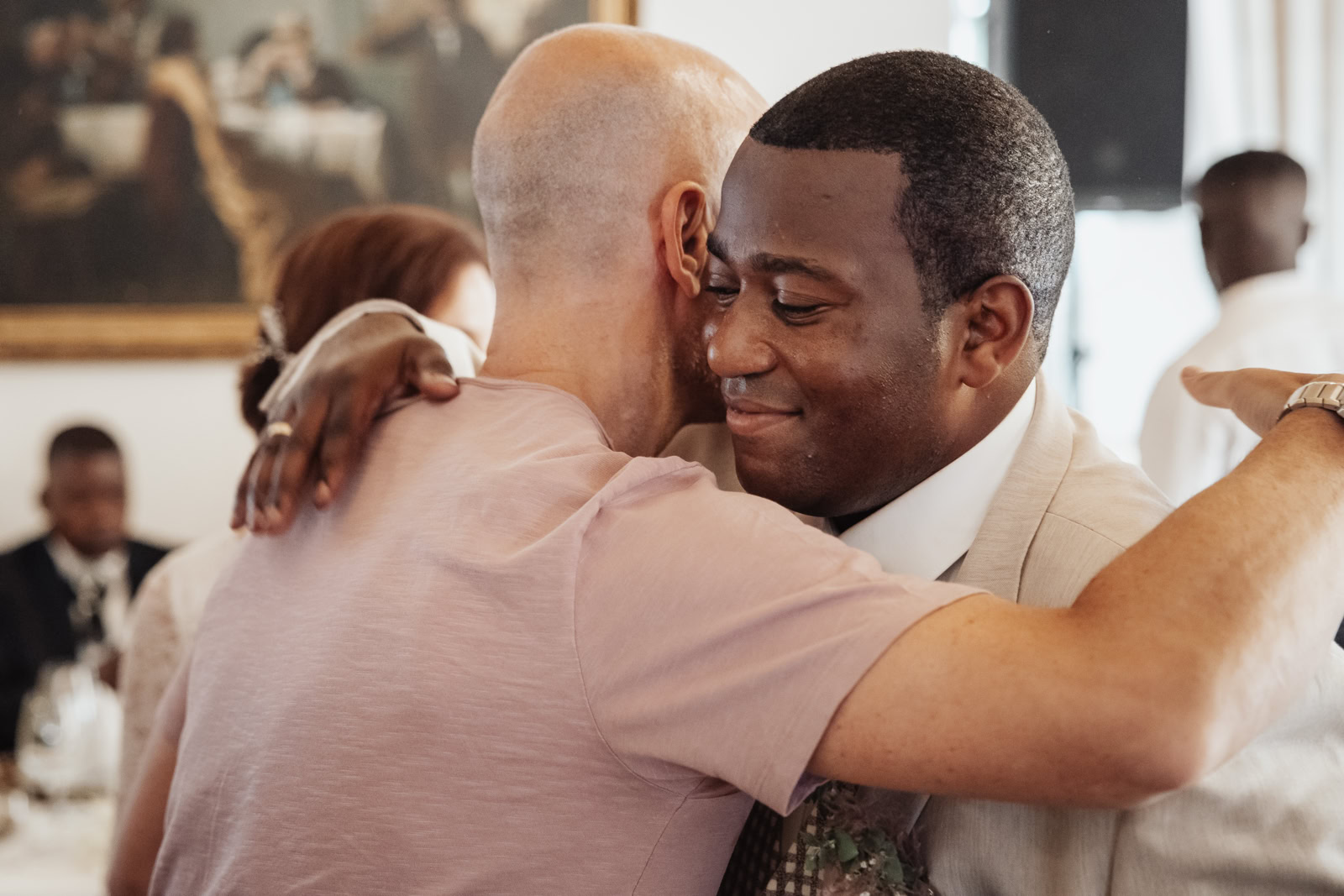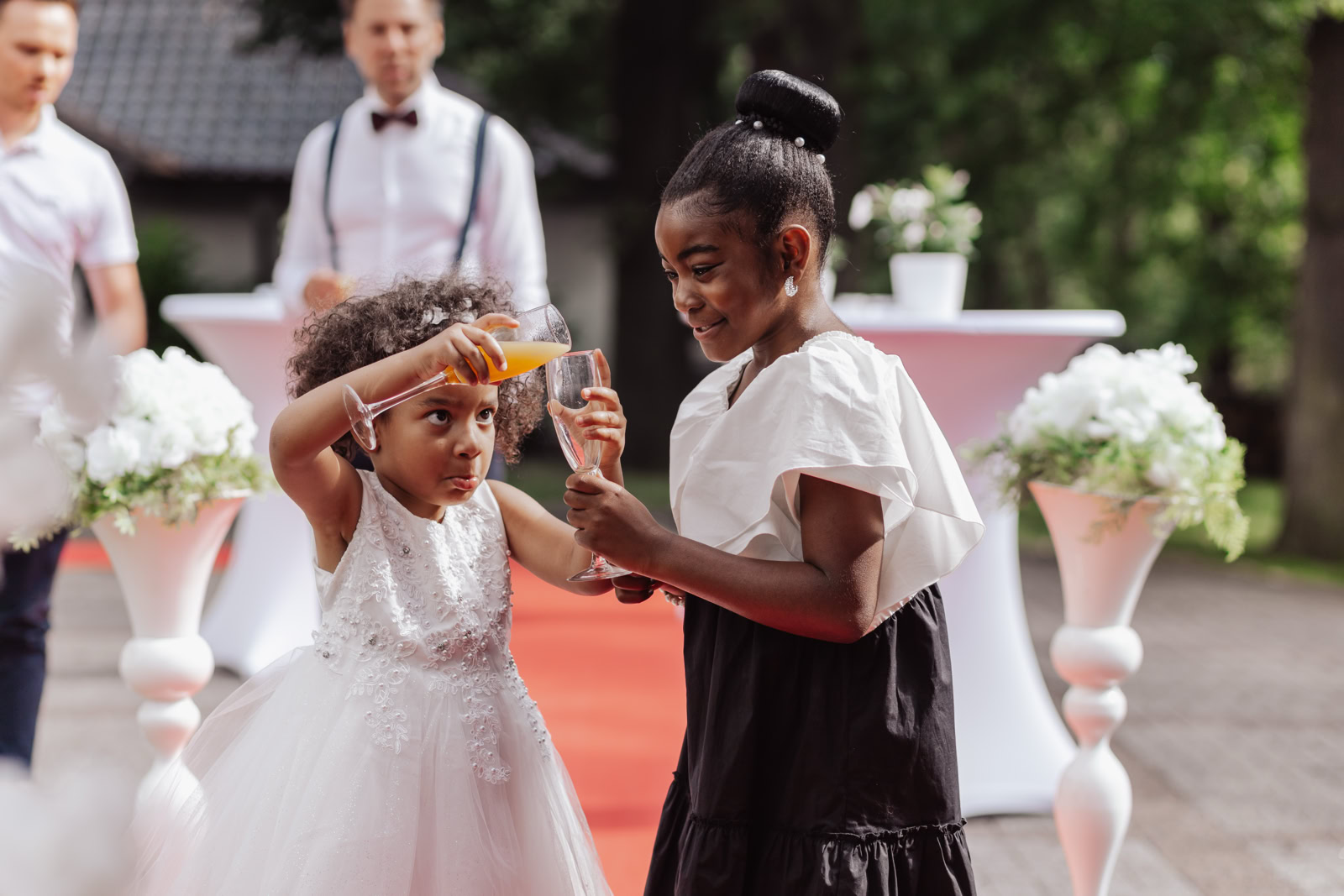 Anschließend lud das Brautpaar ihre Gäste in die Villa Sophienhöhe ein, wo bei strahlendem Wetter ein festlicher Sektempfang und eine ausgelassene Party stattfanden. Die Gäste überreichten ihre Glückwünsche und Geschenke, während ich die einzigartigen Momente und Emotionen des Tages festhielt, die später die Grundlage für eine unvergessliche Reportage bildeten.