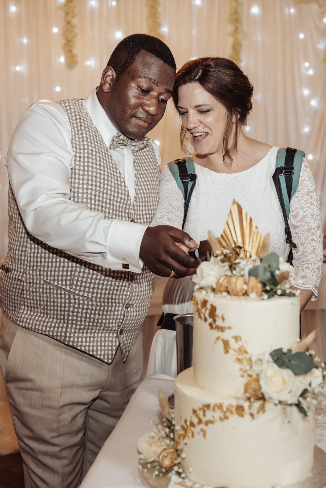 Der Nachmittag wurde mit einem köstlichen Grillbuffet, dem traditionellen Hochzeitstanz und dem romantischen Anschneiden der Torte gekrönt. Als Fotograf war es mir eine Freude, diesen besonderen Tag mit Michele und Dombel zu teilen, und ich konnte sie nach vier Wochen mit ihren wunderschönen Erinnerungen und individuell gestalteten Dankeskarten für ihre Gäste glücklich machen. Mit einem zufriedenen Herzen machte ich mich am Ende des Tages auf den Heimweg, dankbar für das Vertrauen, das mir entgegengebracht wurde, und erfüllt von den unvergesslichen Momenten, die ich miterleben durfte.